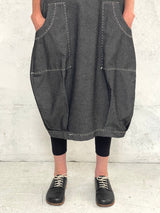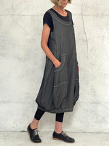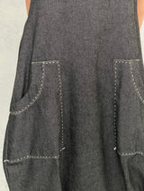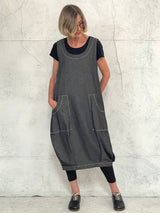 Maya Dress with New Front Pocket Detail in Soft Grey Denim with Hand Stitched Detail