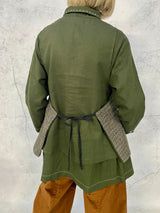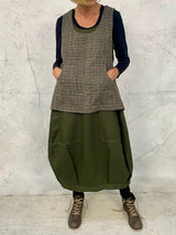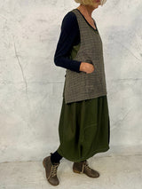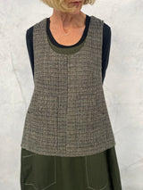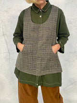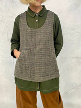 Hana Vest Fleck Wool Front with Contrast Forest Green Linen Back