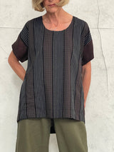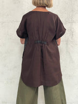Willow Top in Brown Stripe with Bitter Brown Linen Back